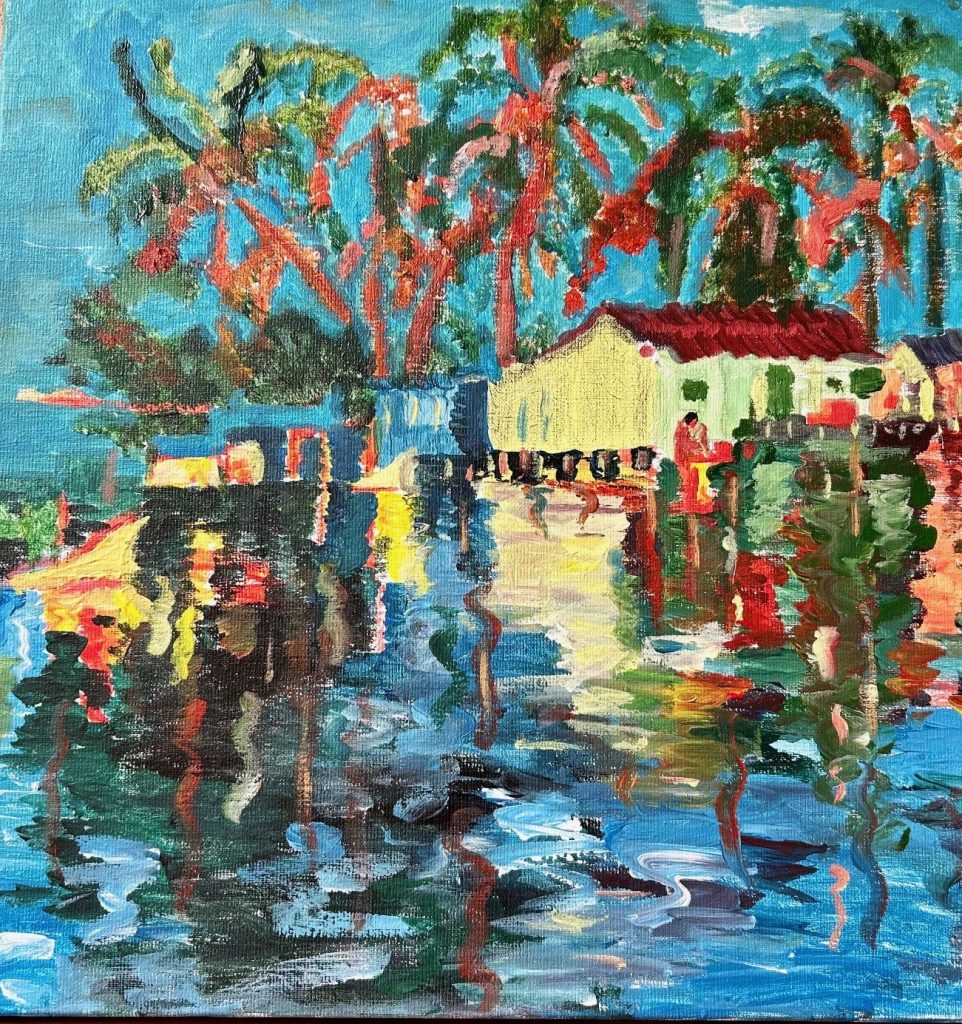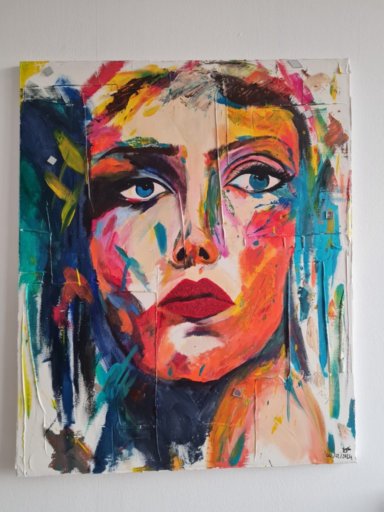 « L’art et moi c’est une histoire d’amour qui a commencé en 2019 dans une période difficile de ma vie où je n’avais envie de rien et rien ne pouvait me faire plaisir. J’ai commencé par assembler des couleurs sur une feuille blanche avec de la peinture à l’eau puis de fil en aiguille, j’ai investi dans l’acrylique et quelques toiles en coton… Qualifiée de “boulimique de la peinture”, je retranscris rapidement mes émotions sur la toile à travers les couleurs et les expressions des visages ».